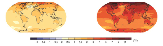 Esta imagen refleja como aumentará la temperatura para el periodo 2081-2100 en relación al periodo 1986-2005.